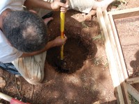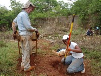 A total of 36 pits were excavated within the courtyard, including the datum and backsight pits. All STPs were 50 centimeters in diameter and all excavated sediment was screened through 1/4 inch mesh. In most cases, the pits were excavated to either subsoil, or bedrock. The exception was one pit on the F-transect (1-F-01), which was over 1 meter deep and could not be dug deeper due to the constraints of the pit’s diameter. Pits were not excavated outside of the courtyard in 2007.
