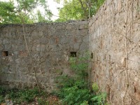 Architectural features within the courtyard were mapped with the total station. These included a small stone outbuilding that was constructed on the interior of the courtyard and adjacent to the courtyard’s eastern wall. Remnants of what appears to be stone edging for narrow planting beds, or possibly drains, were mapped, as well as stone terrace walls.