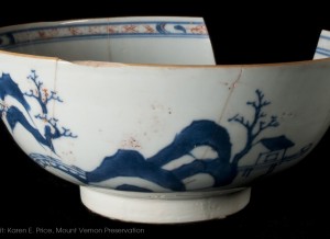 Most of the Delft excavated on Monticello Mountain was found, like this object, in the Dry Well. Delft was losing popularity by the time Jefferson began construction on the mountain in 1769 and was being replaced by Chinese porcelain and the newest and most popular ceramics exported from England, namely creamwares.