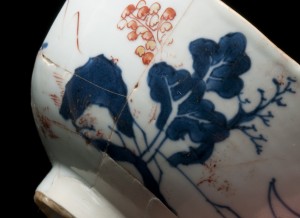 Chinese Porcelain Imari Bowl: Close-up view of exterior scene