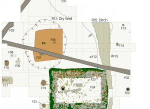 Recent re-analysis of the West Kitchen Yard excavations conducted in the 1980s by Kelso established a robust relative chronology for the features of this site. The Dry Well (F01) was the earliest of the three major features, followed by the ditch (F05), and then MRS-1 (F11). Furthermore, the MRS-1 assemblages were contemporary with a small assemblage from the Ha-Ha (F17). More information about this site’s chronology can be found on the DAACS Chronology page for the West Kitchen Yard.