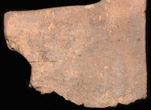 This partial cornice stretcher brick was likely intended for use in the construction of the South Pavilion or possibly an early alteration to that structure. It was likely discarded either because it was not needed or because it broke prior to, or in the course of, building construction. Several of the other bricks encountered in the Dry Well excavations are the same forms as bricks only present at Monticello on the South Pavilion chimneys, firmly linking those bricks to the earliest stages of construction on the mountaintop. This provides us with another indicator that the Dry Well was likely filled during the late 1770s. Furthermore, the presence of some deposits that contain large quantities of construction debris supports the hypothesis that the Dry Well was filled with refuse that accumulated, or was generated, at various locations on the mountaintop and then re-deposited into the Dry Well itself at a later date (Clites and Bates 2008).