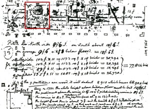 This observation must have been recorded slightly prior to the completion of the well, as the excavated Dry Well measured 19 feet deep below the modern grade of the mountaintop. In the Memorandum Book entry Jefferson observes construction at 14 feet. The “yellow rotten stone” that Jefferson refers to is likely decomposing greenstone, which comprises the bedrock of Monticello Mountain. Large “rotten” greenstone and other large boulders were encountered during the Dry Well excavation, possibly from the original soil removed from the Dry Well or from similar bedrock-like soil encountered while constructing the mansion.