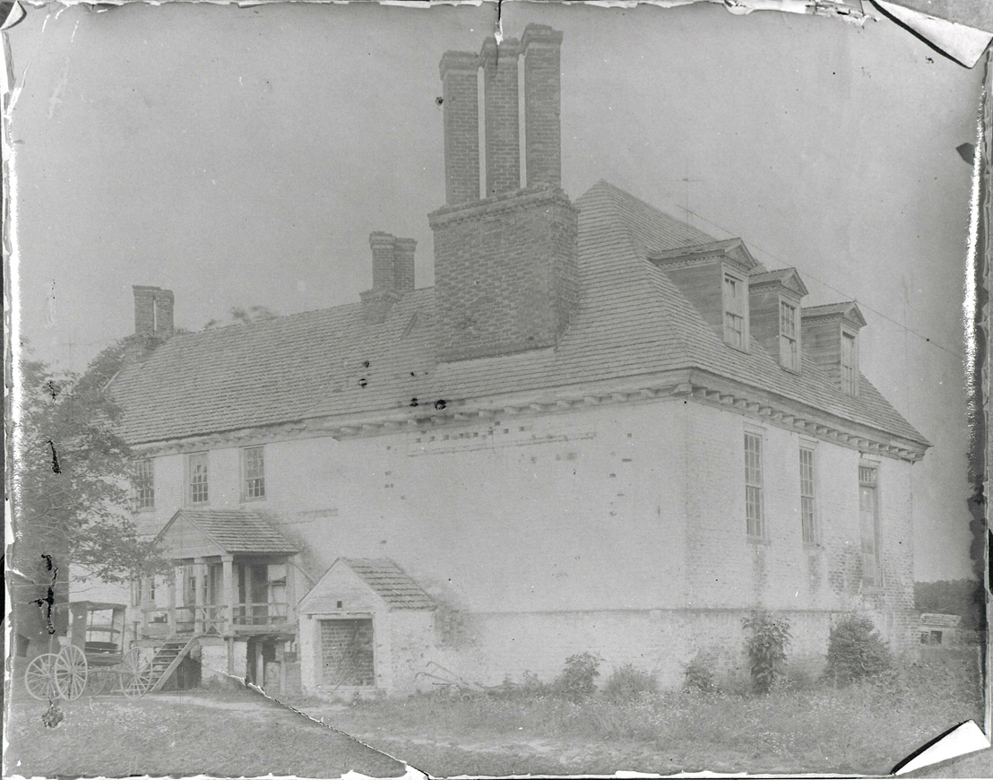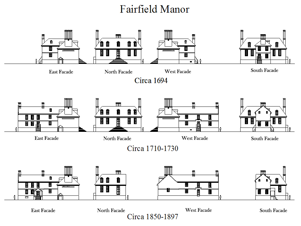 Lewis Burwell II assumed control of Fairfield upon his mother’s death and, during the subsequent decade, increased productivity on the plantation and established his name among the colony’s planter elite. While being raised by a mother and three fathers may have been difficult, the knowledge and connections of these individuals prepared Lewis II for his future station in life. By 1674, he had married Abigail Smith, the niece and primary heir of Nathaniel Bacon (the elder), a member of the council, one-time acting governor of the colony, and a man of considerable wealth and influence. The couple had nine children together. Upon Bacon’s death in 1692, Lewis II inherited through his wife significant landholdings across the colony along with substantial financial resources. Abigail died less than eight months after her uncle (McIlwaine 1925: 218). Two years later, Lewis II apparently finished the Fairfield manor house, placing a cartouche with his and his wife’s initials and the completion date – LAB 1694 – on the eastern chimney gable (The William and Mary Quarterly 1894:2:4). Lewis II married Martha Lear Cole a few years after Abigail’s death, and by 1707 moved to Nathaniel Bacon’s Kings Creek Plantation on the south side of the York River, closer to the new capital at Williamsburg.
