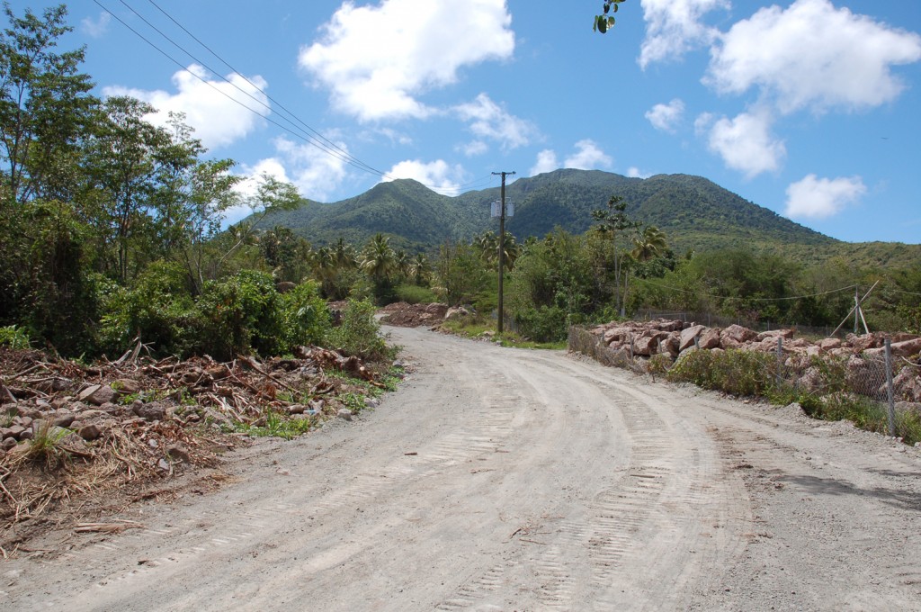 Jessups plantation lies on sloping ground on the west side of the island of Nevis. The map shows the estate in two parts: on the left is the upper part of the estate, running up to the forest below the mountain peak; on the right is the lower part of the estate extending down to the sea. The two parts of the estate together stretched from the mountain on the east to the sea on the west. In the part on the left hand side were situated the centre of the Mountain Plantation, the great house, the sugar works, the slave village (i.e. to the east), and slave provision grounds. Little survives of the plantation house or works.