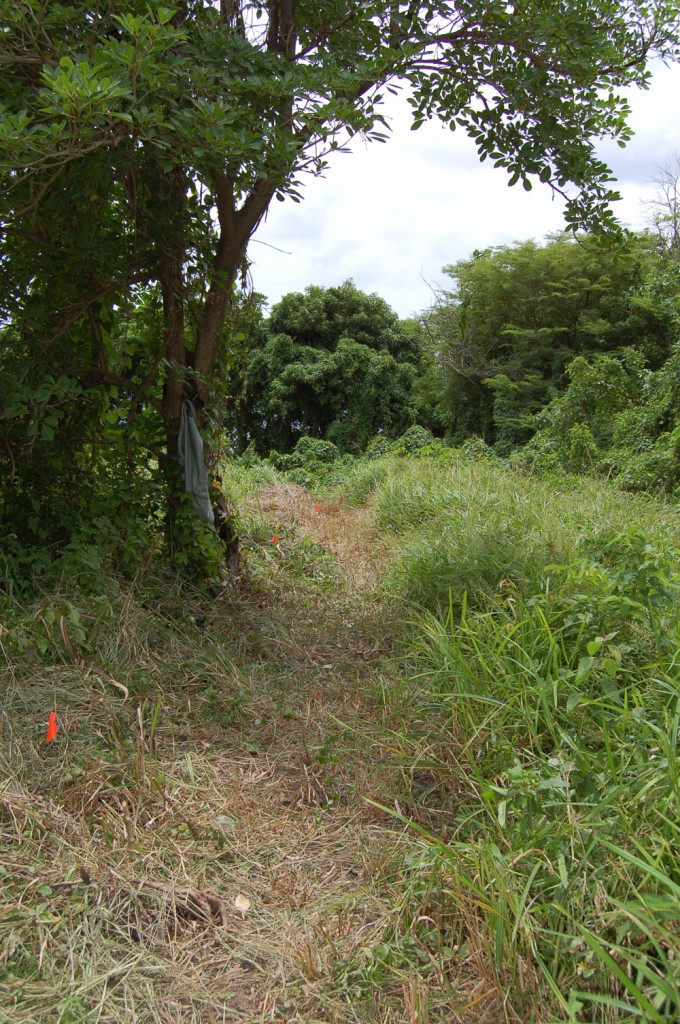 Much of the two village sites is covered with dense forest, which has grown up since the sites were abandoned, although interestingly a modern path through the trees still follows the route of the path shown on the 1755 map. There had been two threats to the site in recent years. Firstly, in the early 2000s it was thought that development for new houses was destroying earlier slave graves, one of which was well known. The second threat materialised in 2008 with further housing development. The project archaeologists realised that this had begun to destroy the site of the earlier slave village, so work was needed urgently to record any remains before they were lost forever.