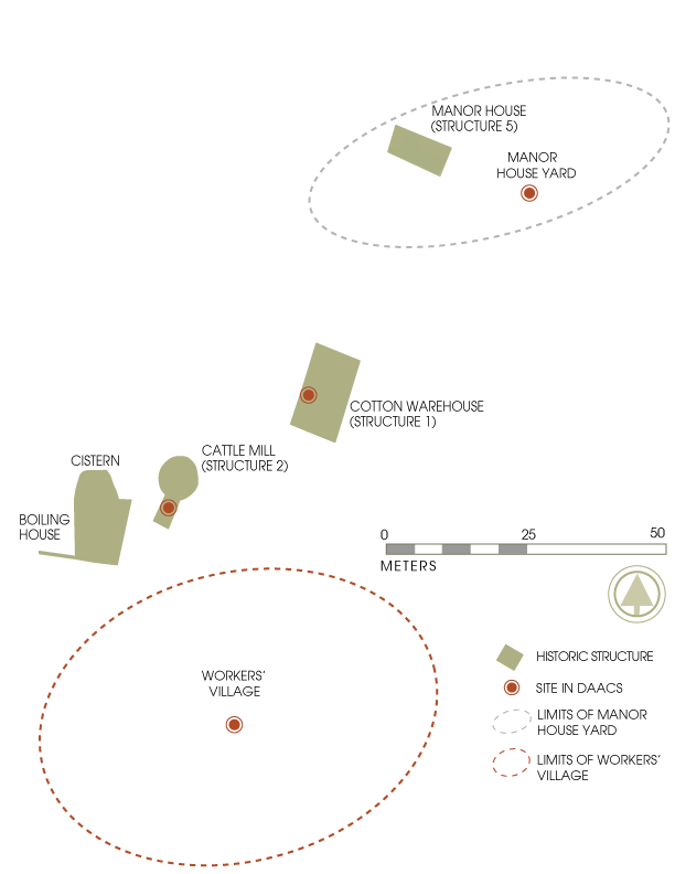 Archaeologists returned to the site in January 2006. A map of the site was plotted, with the assistance of John Beatty, retired and former head of Montserrat Lands and Survey Office. Excavations were then conducted on the three of the four main structures: the Manor House (Structure 5), Cotton Warehouse (Structure 1) and the Cattle Mill (Structure 2). Assemblages from the test units excavated in 2006 are comprise the data in DAACS (Pulsipher 2006).