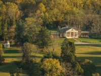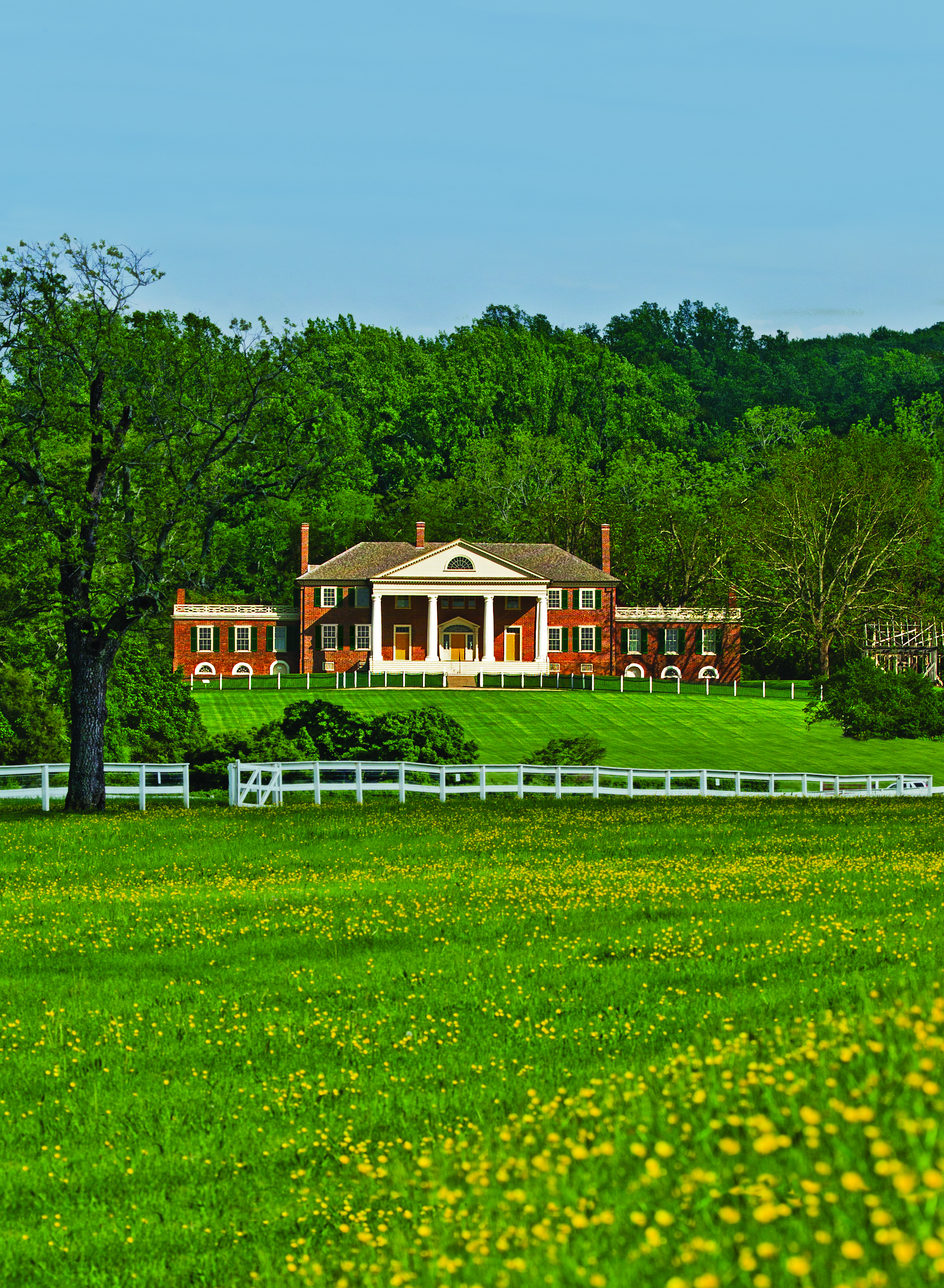 Mr. Madison’s Temple and the Mansion West Elevation after the house was restored to its ca. 1812 appearance ca. 2008. Image courtesy of Montpelier Foundation.