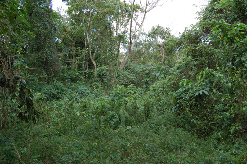 Plantation settlement came relatively late to the Montpelier region. The Spanish, who held Jamaica as a colony from 1494 to 1655, failed to establish a population, and before them the Taino people had concentrated themselves in the nearby coastal zones. Thus the English found the valley heavily forested, with very large trees creating a canopy for lower growths, vines, bromeliads, ferns, and wild orchids. The first grants of land were made by the English crown in the 1670s but the area remained sparsely settled. The famous Cockpit Country, located immediately to the east, was a special product of limestone-solution topography and dramatically well-suited to guerilla warfare as practised by the Maroons, the African people who had escaped slavery to successfully fight the British forces and colonial militia.