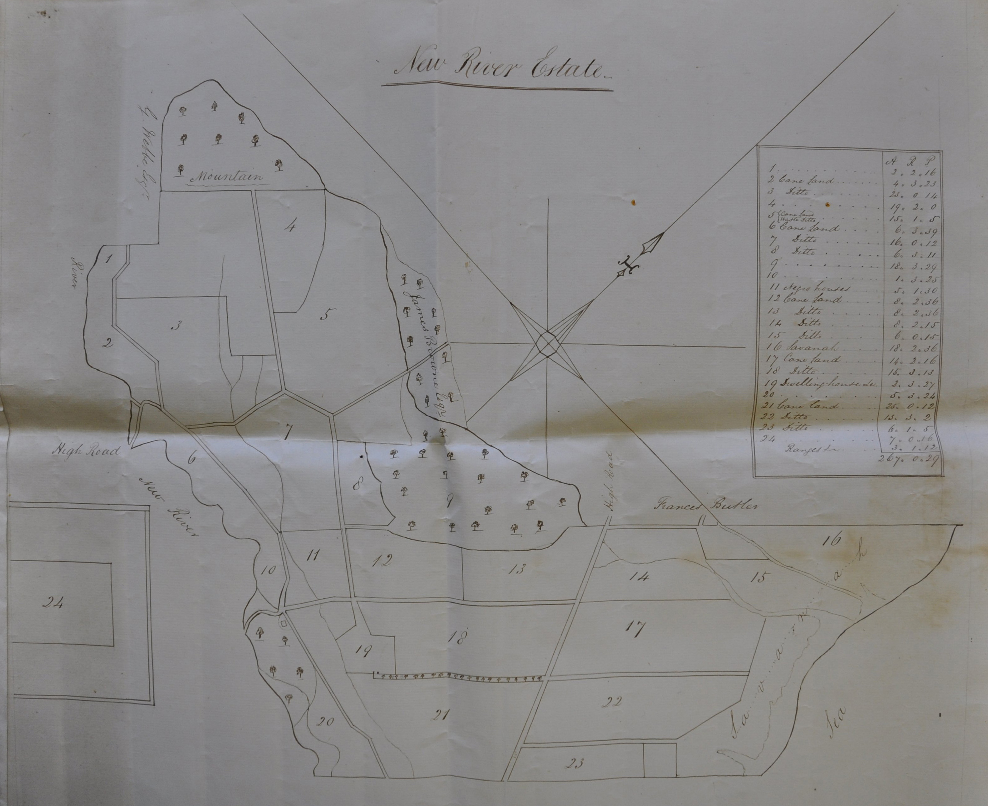 Today, the New River Estate remains relatively undeveloped. Ruins of the great house, cisterns, and sugar works, including an early windmill and a later steam mill, all indicate substantial owner investment in the plantation in the 18th and 19th centuries. Relocation of the slave village in the 1780s, as well as the upgrade in sugar works technology demonstrate that New River owners upgraded their sugar works in order to maximize sugar production in the face of abolition of the slave trade (1807) and emancipation (1834).