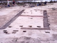 One structure, Structure B, had several features that were excavated: every isolated posthole for the structure, replacement postholes along the southeast wall, two test cross-sections of the house trenches, and two-to-three inches of the remaining trenches were excavated in order to to examine them for postmolds as complete excavation of these was not feasible.
