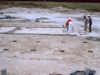 A 30 by 30 ft block was placed to investigate a surface brick feature and associated structure (Structure 245C1). The block was hand excavated in ten foot units with 6-inch baulks (Wheaton et. al. 92). It was discovered that this structure directly overlaid an earlier one (Structure 245C2). Nine or ten brick piers associated with C1 rested on and were aligned with the trenches of C2. Structure C2 had an associated cellar that was sectioned and the northeast and northwest quadrants were excavated.