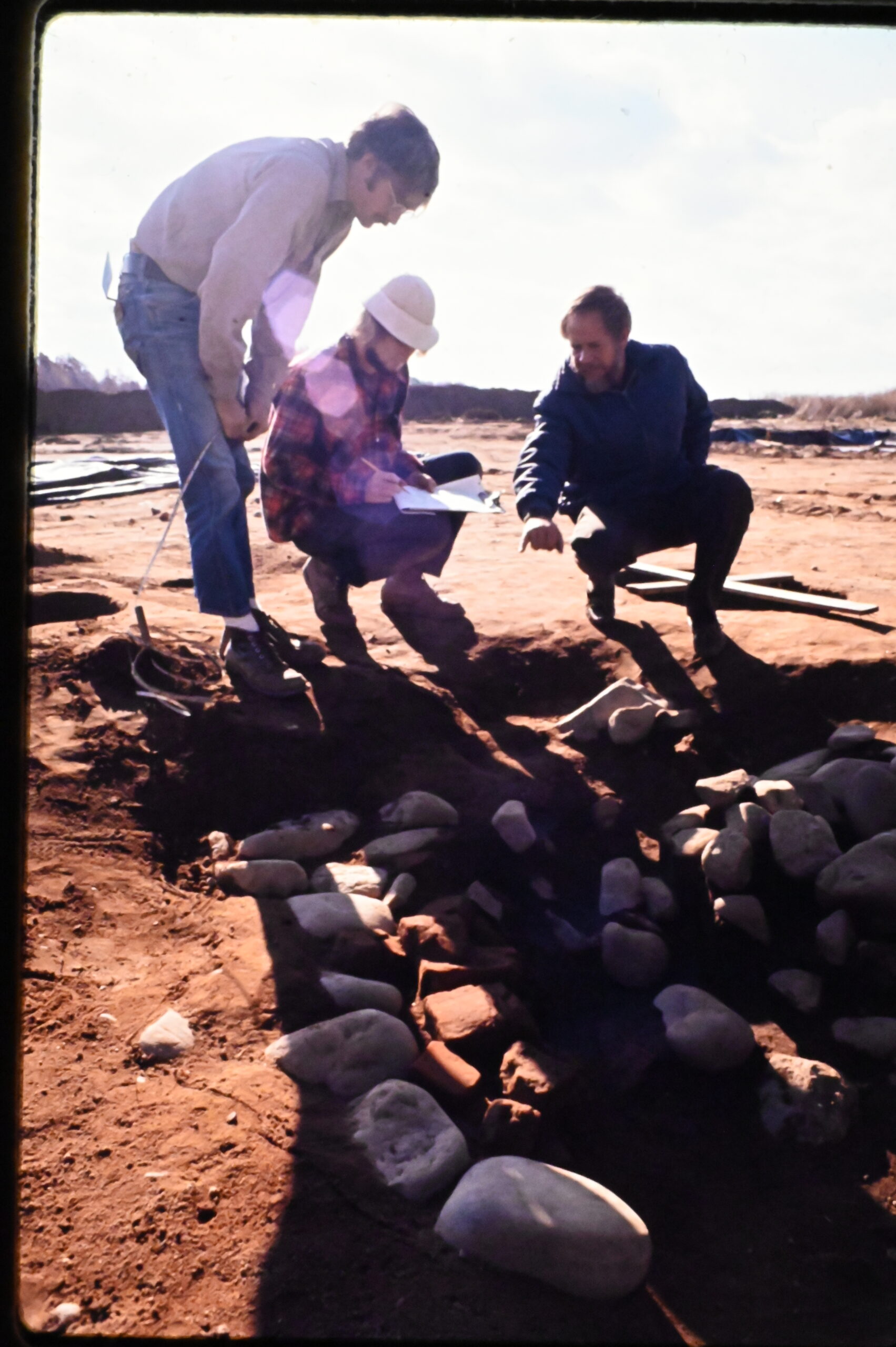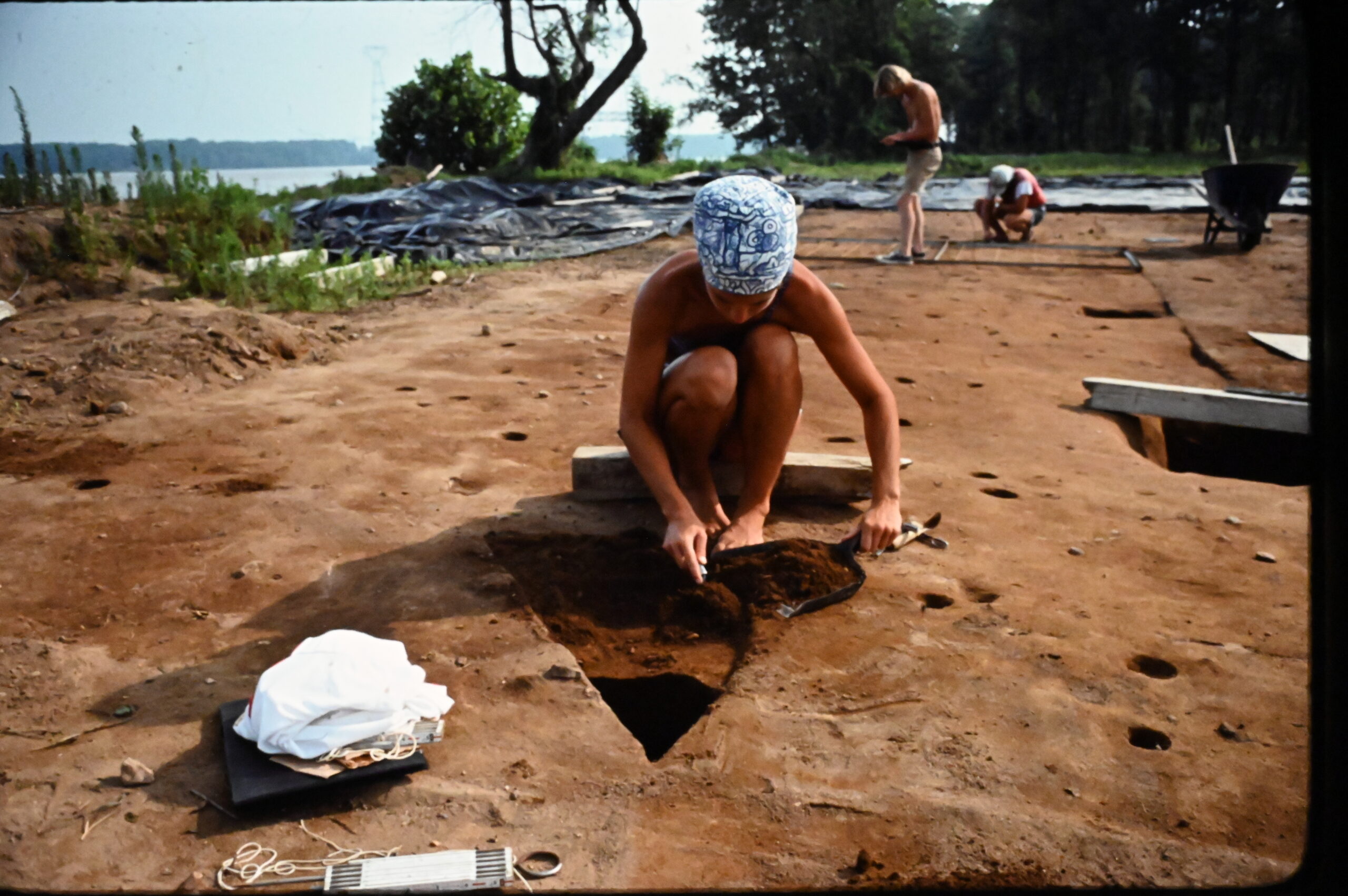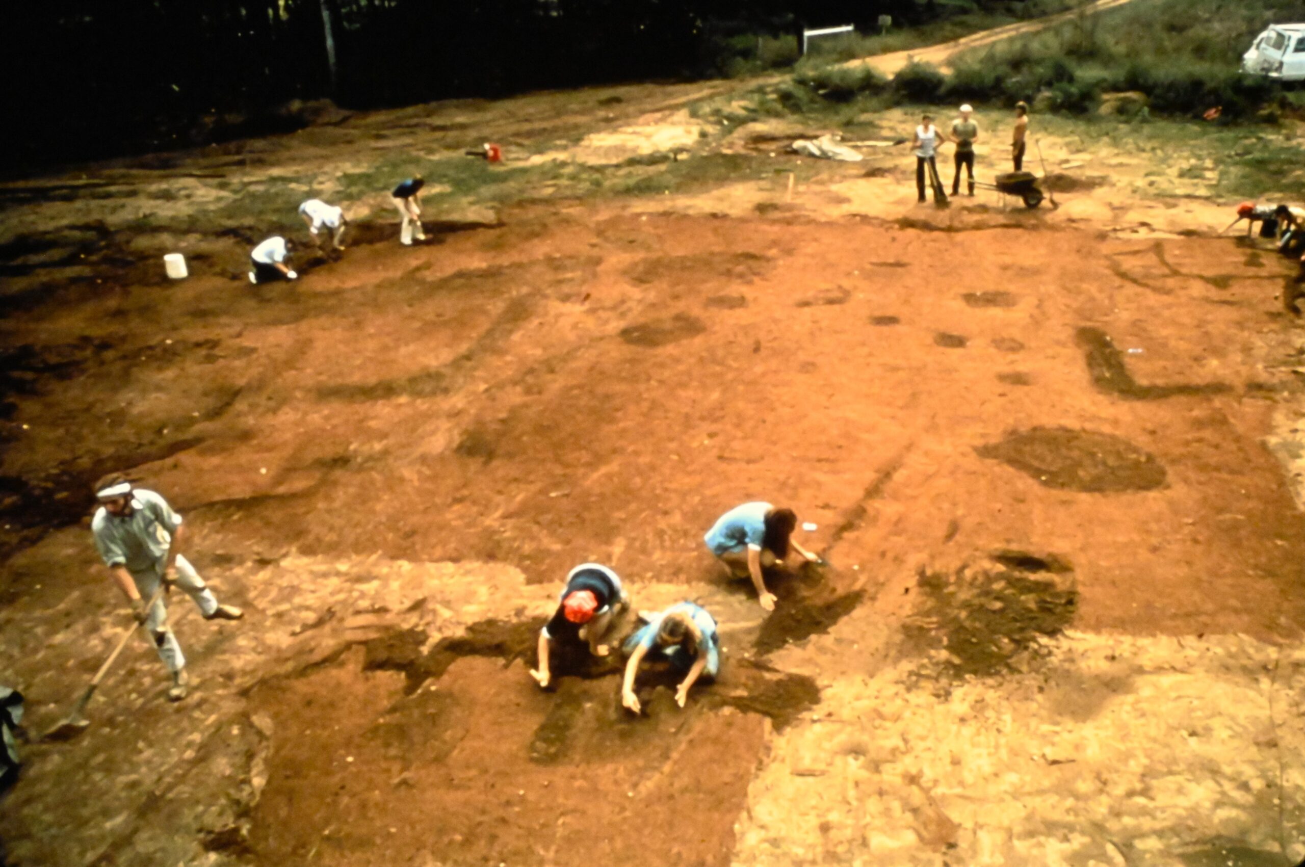 Dr. Norman Barka and Leverette Gregory directed excavations at the site with staff from Southside Historical Sites, Inc. and students from the College of William and Mary. The most intensive field seasons were conducted from 1974–1978 by small crews of three to seven field archaeologists. This fieldwork uncovered thousands of lithic tools, debitage fragments and ceramic sherds that indicated the site had been occupied intermittently and intensively for over a millennium. In addition, hundreds of small circular shallow features uncovered below plowzone were interpreted as the remains of driven posts. While tracing the relationships between these various posts was difficult a particularly striking pattern was characterized as the remains of two circular palisades associated with a Late Woodland/Contact period Native settlement.