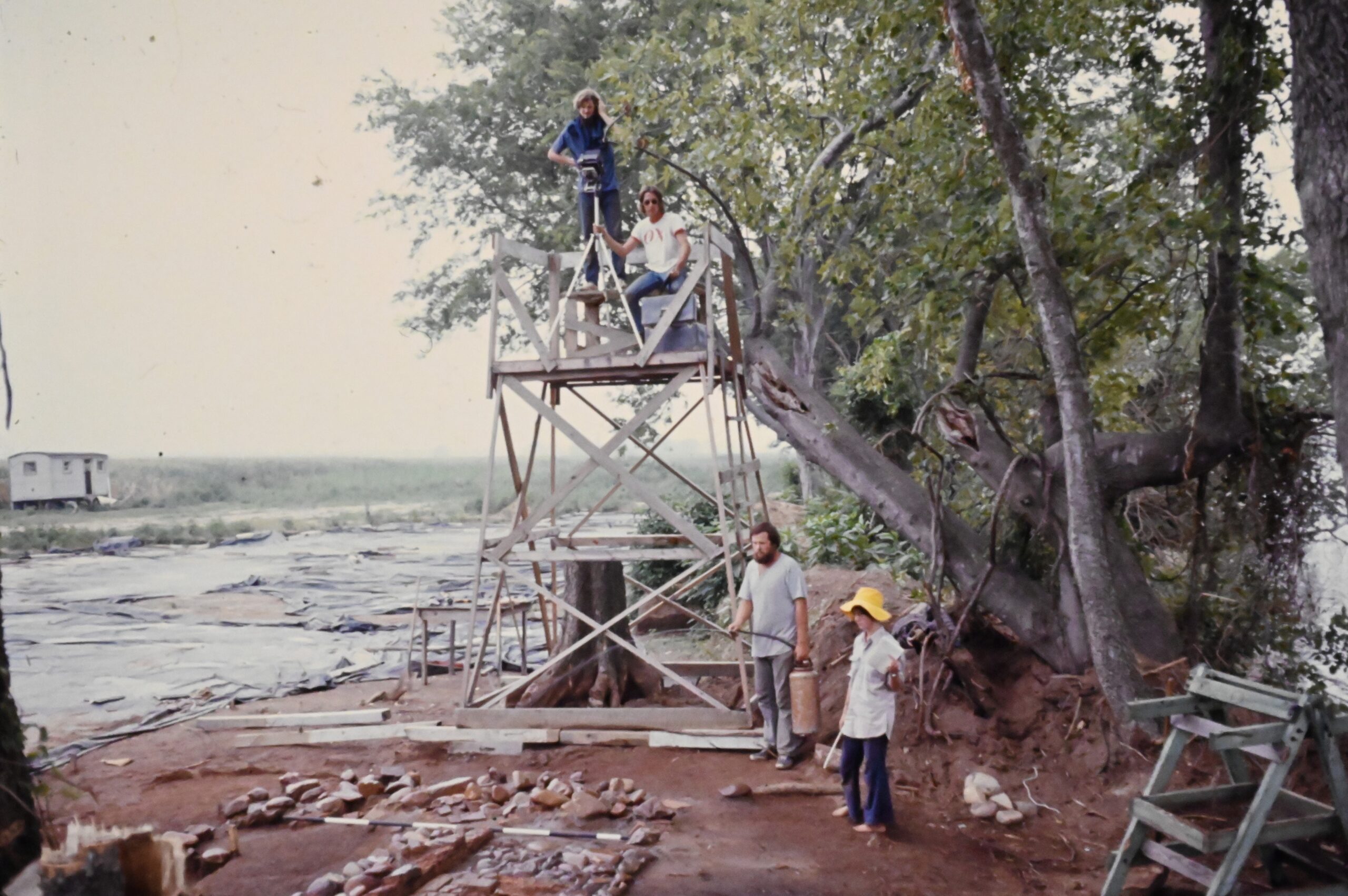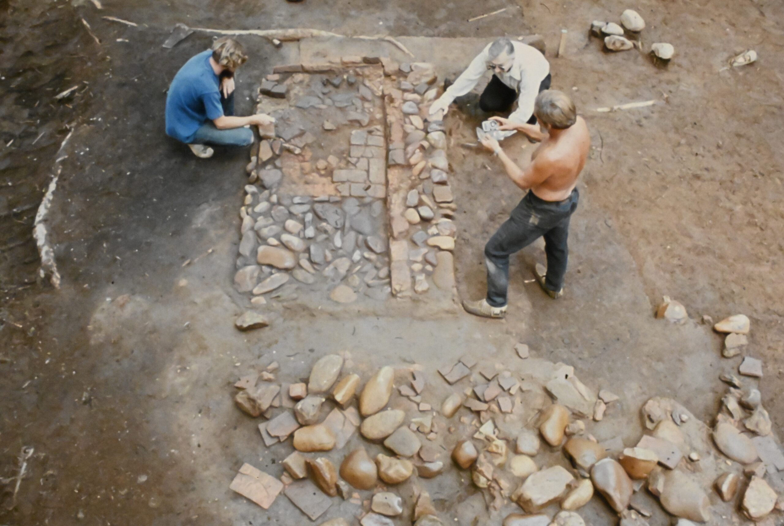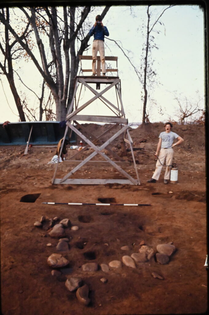 Dr. Norman Barka and Leverette Gregory directed excavations at the site with staff from Southside Historical Sites, Inc. and students from the College of William and Mary. The most intensive field seasons were conducted from 1974–1978 by small crews of three to seven field archaeologists. This fieldwork uncovered thousands of lithic tools, debitage fragments and ceramic sherds that indicated the site had been occupied intermittently and intensively for over a millennium. In addition, hundreds of small circular shallow features uncovered below plowzone were interpreted as the remains of driven posts. While tracing the relationships between these various posts was difficult a particularly striking pattern was characterized as the remains of two circular palisades associated with a Late Woodland/Contact period Native settlement.