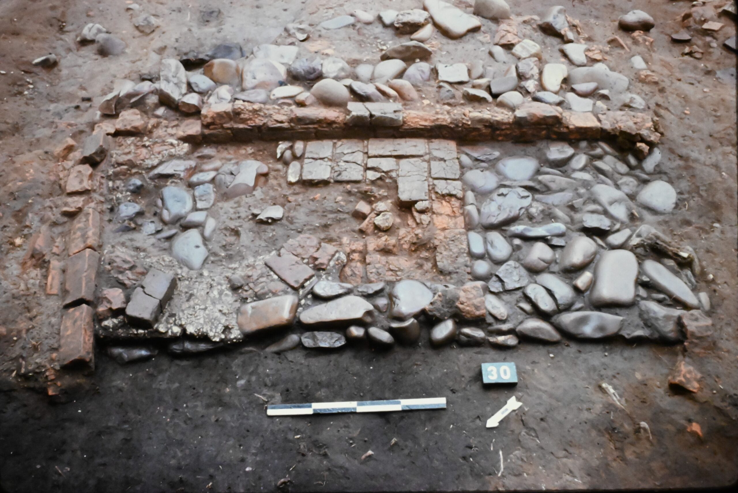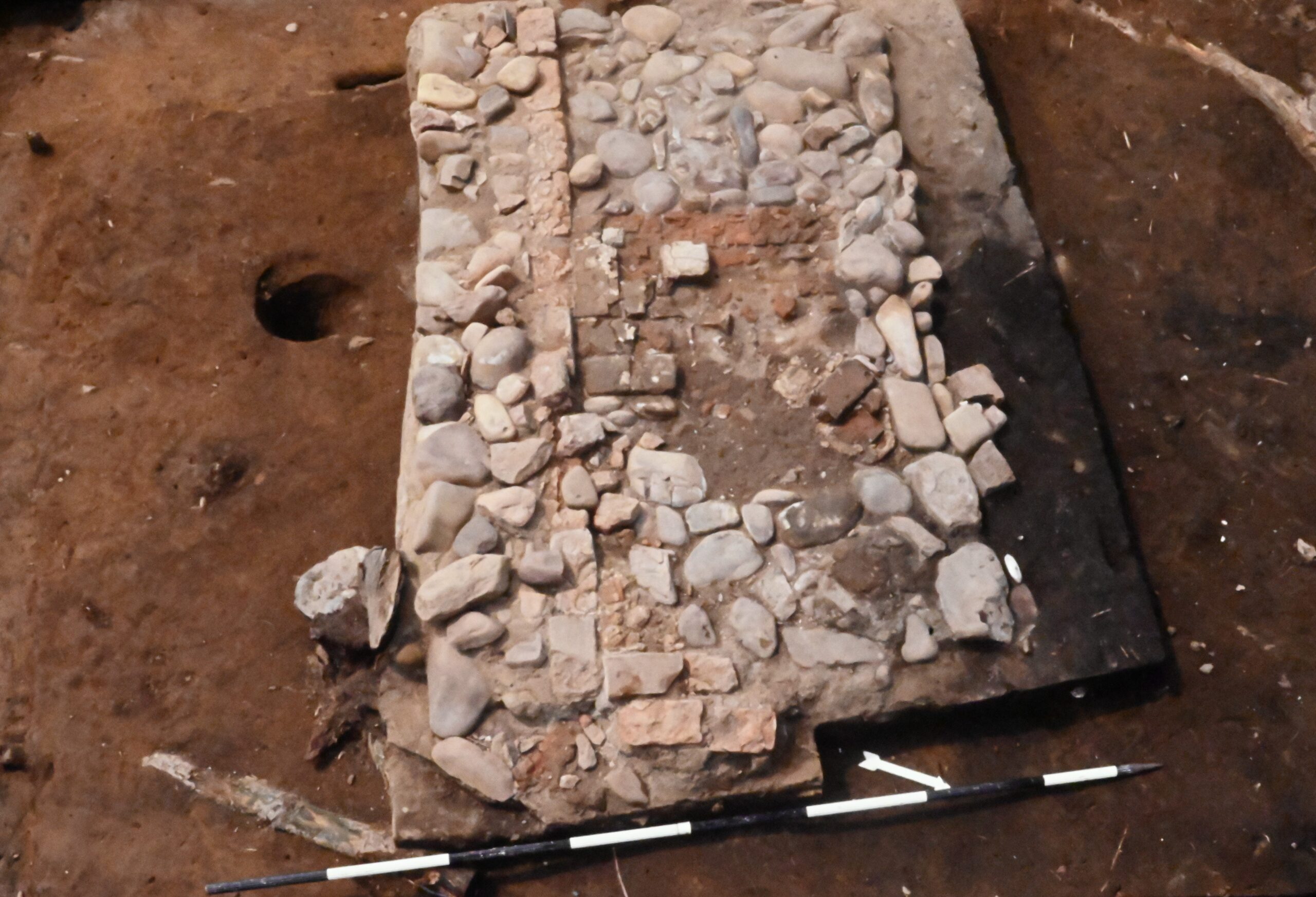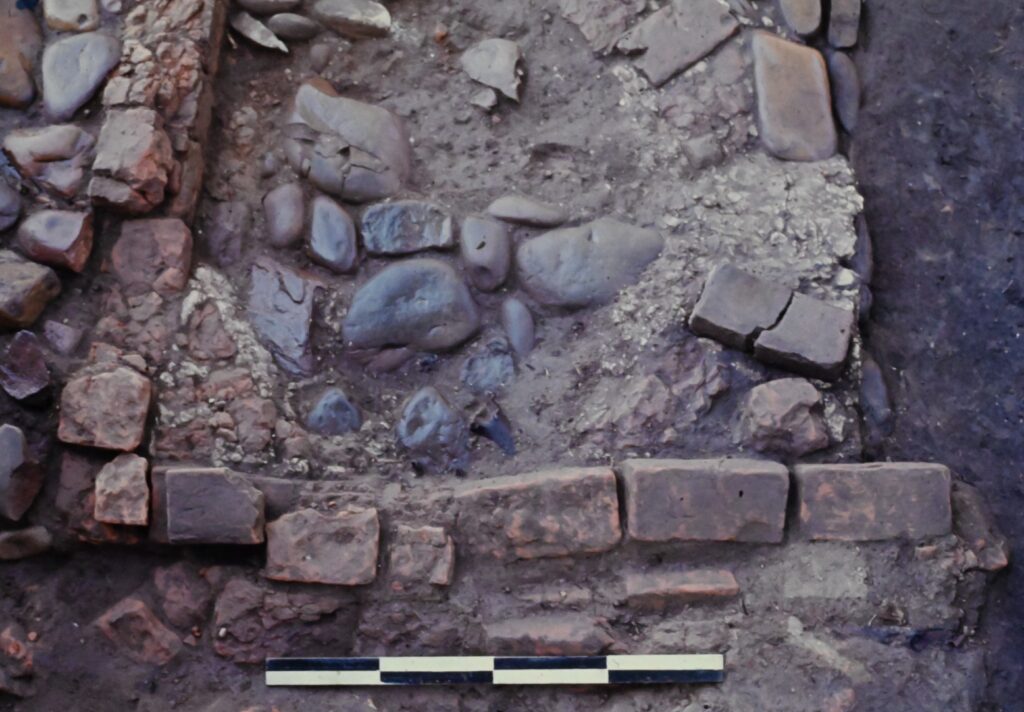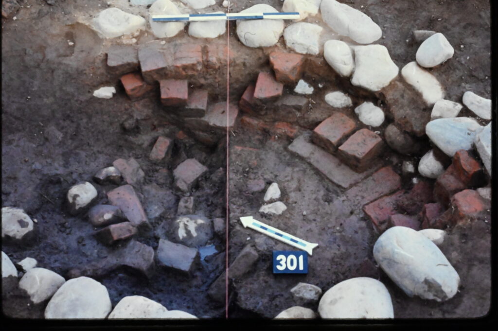 The southern area of the compound has been interpreted as the “residential area” and contained three primary features; a well and Structures 1 and 2. The well, which was only about five feet deep, was lined with a combination of bricks and cobble stones. Postholes clustered around the exterior of the well feature have been interpreted as supports for a cover and/or rail.