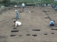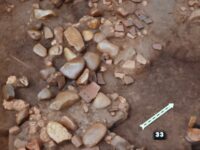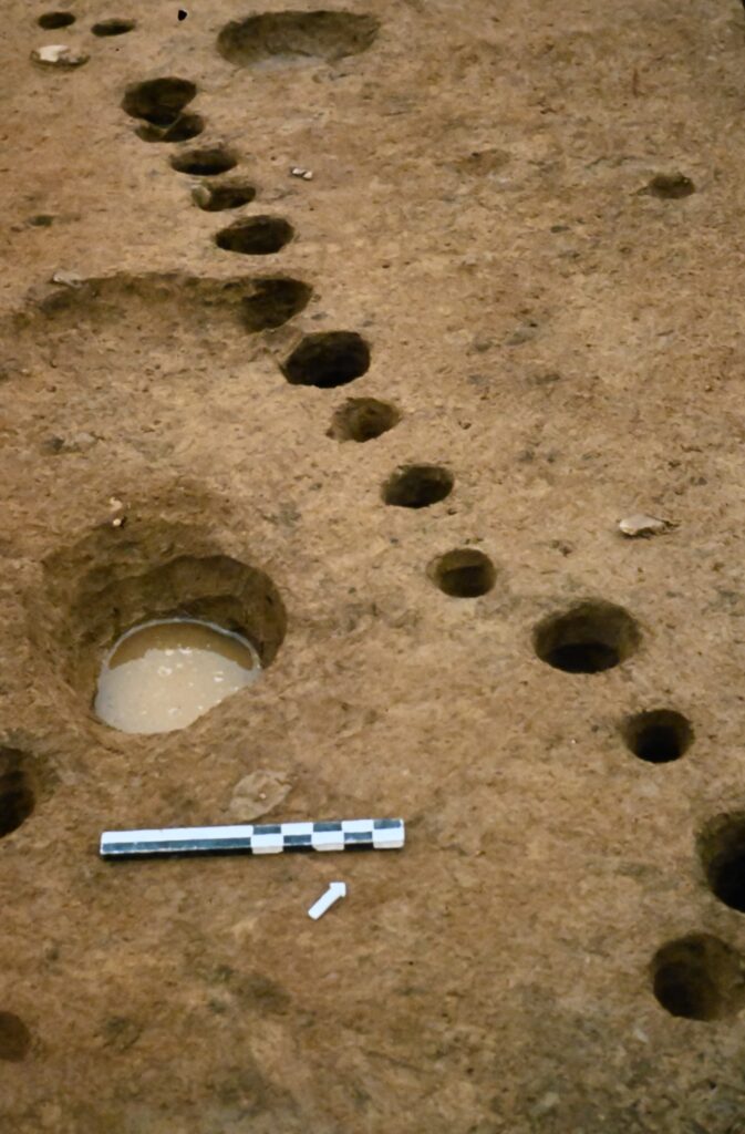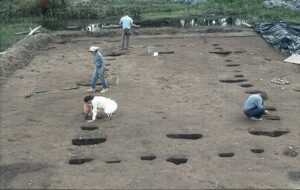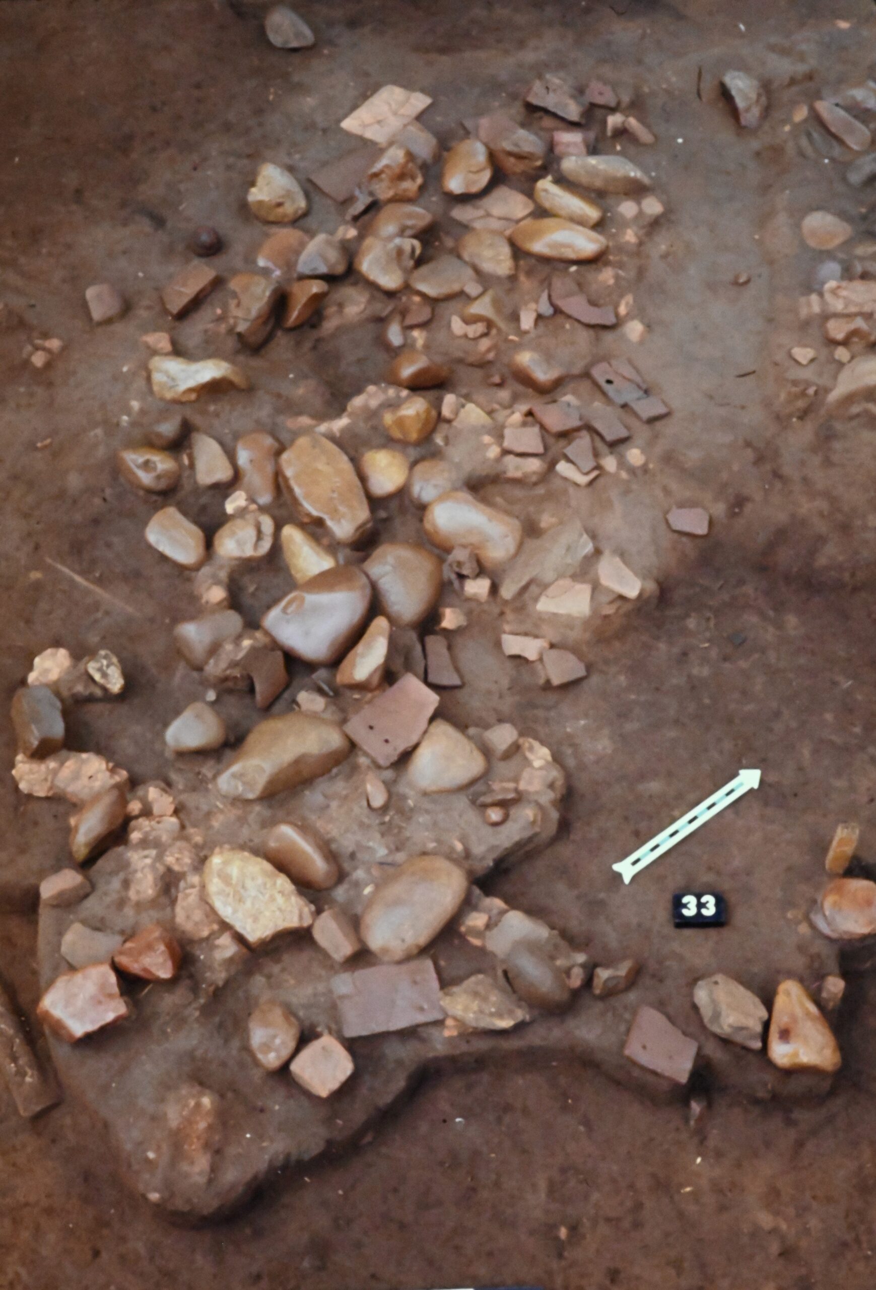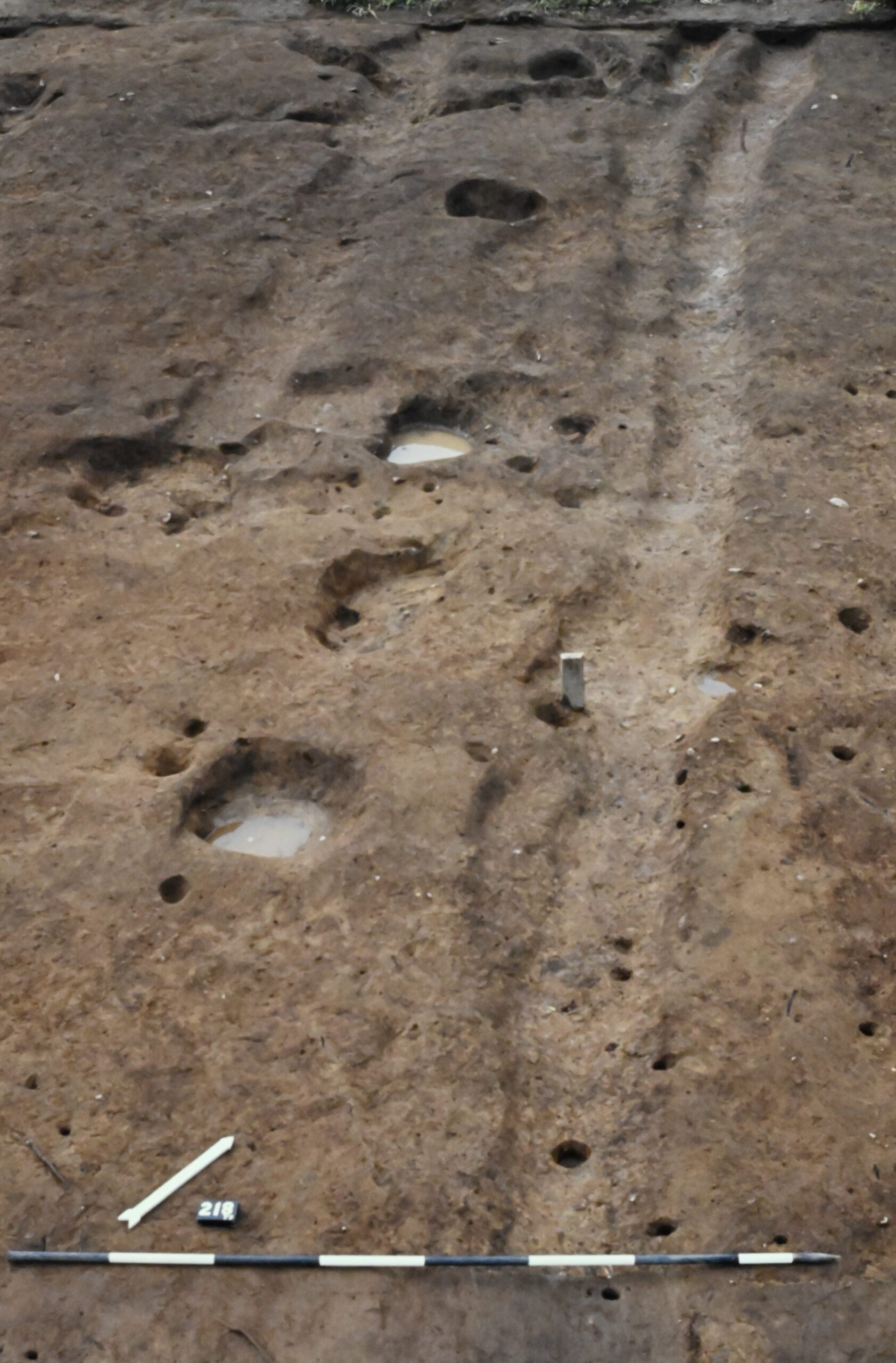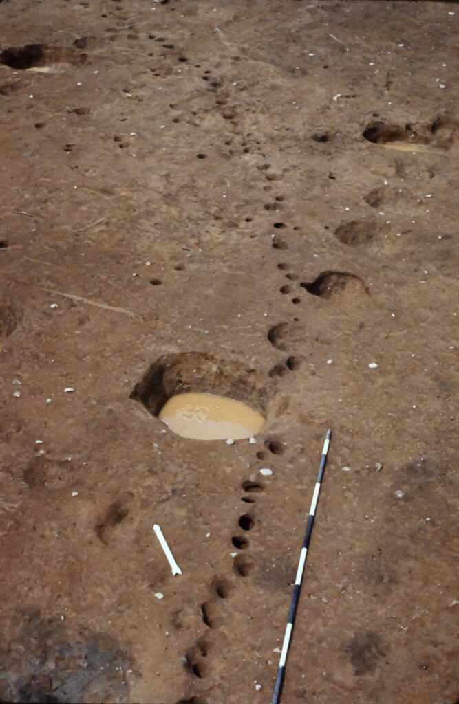 The western third of the compound was largely devoid of stratified evidence of human activity. A linear alignment of posts was interpreted as a dividing wall, possibly to create an enclosure that animals could be driven into at night or at times of danger.