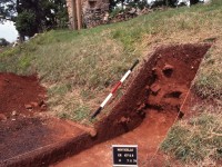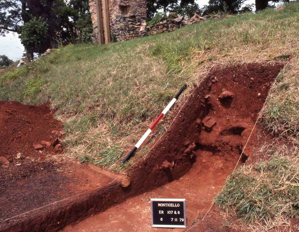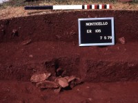 During the 1994 summer field season, Kern conducted excavations to the north of the Joinery foundation to locate planting holes for the trees that lined Mulberry Row during Jefferson’s time. Excavations revealed several possible postholes and other unidentified features.
