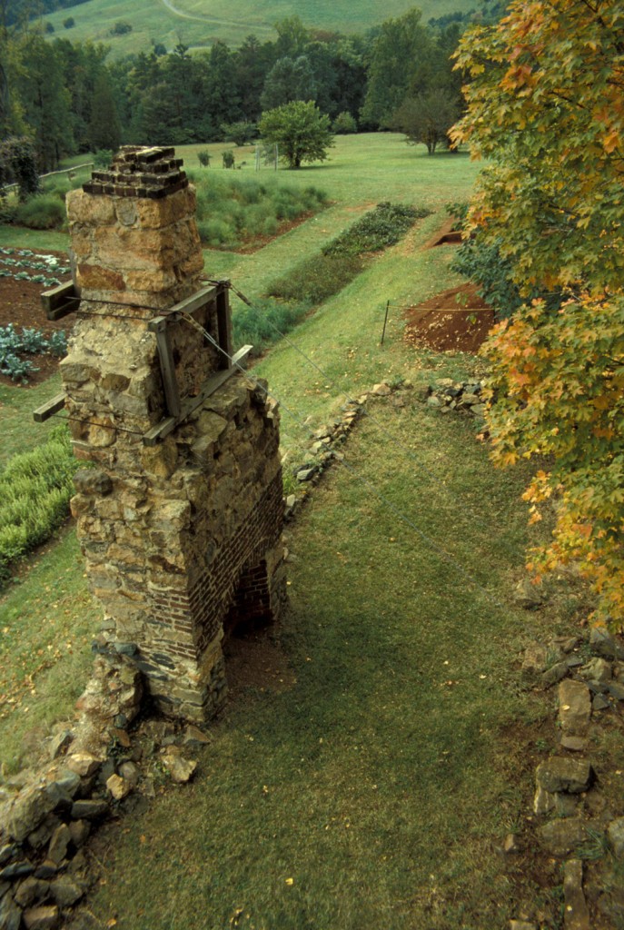 Extensive documentation of the presence of the Joinery on Mulberry Row exists after 1800. An insurance inventory from 1800 records a “Joiner’s shop,” valued at 320 dollars (Bear and Stanton 1997:1025). An Albermarle County Survey of Monticello, conducted the same year, describes a one-story joinery (Jefferson: N546, as reproduced in Hill 2002b (8)). After 1806, the Joinery appears on most maps of the mountain as a landmark (Jefferson: N203 p.2, N204, N209, N214, N215, N216, N218, N225). Visitors to Monticello after Jefferson’s death in 1826 describe the crumbling foundation and chimney of the joinery. For example, visitor Emma Frances Allen wrote in 1899, mistakenly identifying the Joinery as the Nailery (Hill 2003 (4): Section 23):