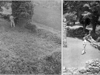 “Leaving the cemetery & driving through the woods an eighth of a mile or so, and still ascending, we came to the lawn, and soon passed the ruins of the nail factory. Parts of three walls are standing, well draped with ivy which here keeps green the year through…”