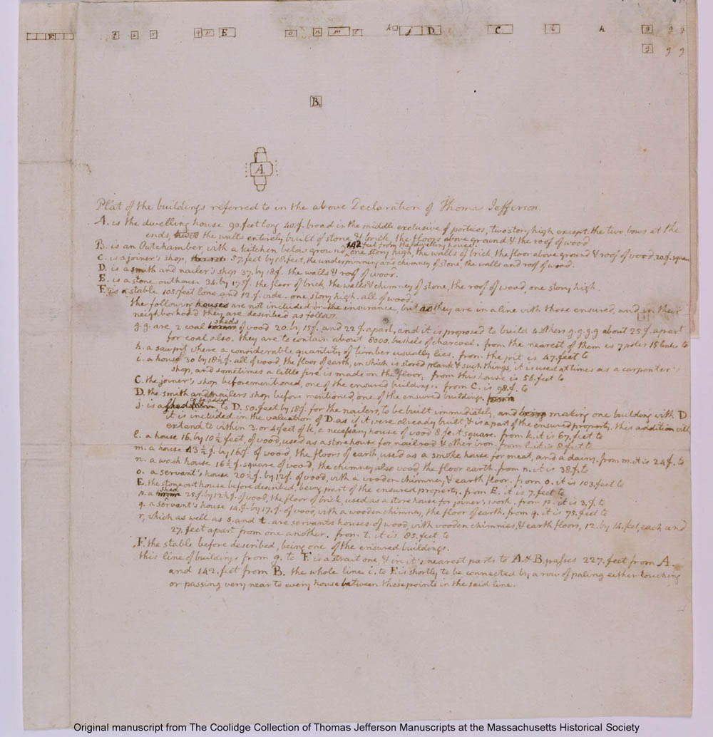 1796 Monticello: building insurance. N133; K136. Thomas Jefferson Papers: An Electronic Archive. Massachusetts Historical Society, Boston, MA. http://www.thomasjeffersonpapers.org