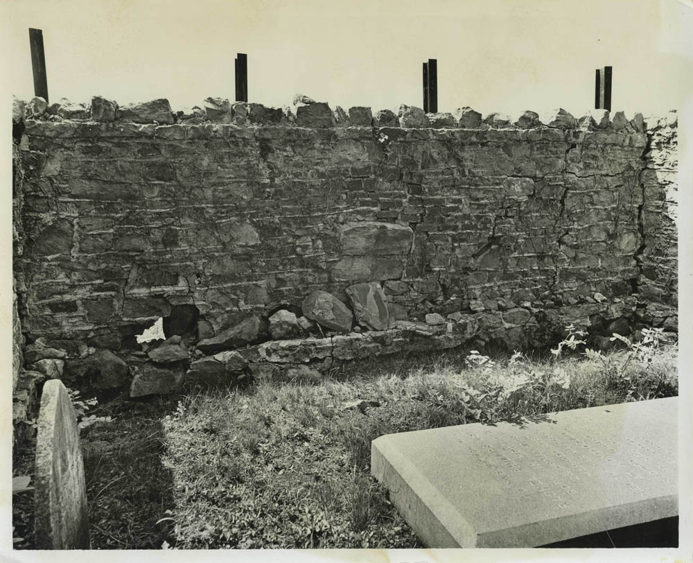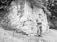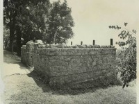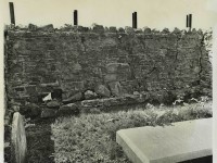 At the 1809 Stone House, Pi-Sunyer focused on an architectural analysis of the exterior stone walls. He measured the building to be approximately 21-by-18 feet (Pi-Sunyer 1957: 17) with a central entrance facing Mulberry Row (Pi-Sunyer 1957: 18). He noted that these measurements were not exact, due to the extensive vegetation that could not be removed from the walls (Pi-Sunyer 1957: 18). During the excavations on the exterior of the east and west walls he discovered that the mortar used on the above-ground stonework was different than that below surface-level. The mortar between stonework visible above the surface was applied much more heavily, and Pi-Sunyer suggested this was evidence that the standing walls were re-erected at some point following the building’s original construction (Pi-Sunyer 1957: 18-19) and that the walls may have been taken down around the time of the 1839 burial of Rachel Levy.