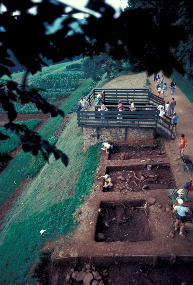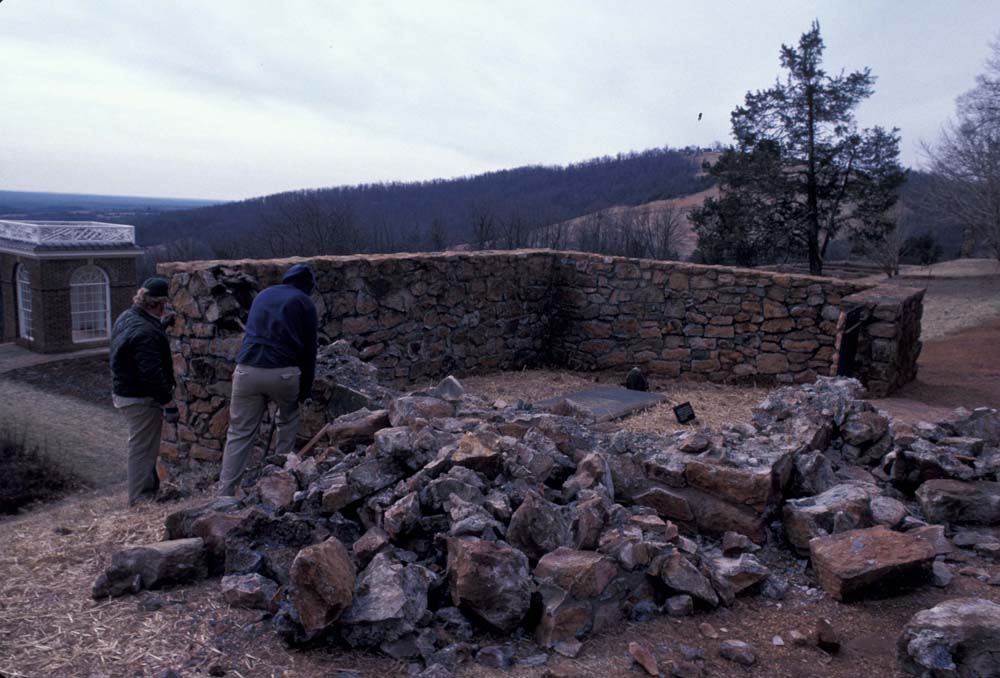 The site was first excavated by Dr. Oriol Pi-Sunyer in 1957. In 1973, the stonework was dismantled and rebuilt for structural reasons. During parts of the 1979, 1980, 1982, and 1984 field seasons, Dr. William Kelso conducted excavations both inside the structure and in the exterior area directly to the east. An additional excavation unit to the northeast of the stone foundation was excavated in 1994 under the direction of Dr. Susan Kern in order to investigate the original Mulberry Row tree plantings.