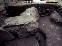 Although there is no analysis or write-up associated with work undertaken in 1982, the context records completed at the time of excavation (originally associated with the Building o project) reveal that investigators were looking in the area just to the east of the standing Stone House for evidence of Building n, the washhouse that originally appeared in Jefferson’s documents. Features include at least one posthole (F09) containing several stones, which could possibly be part of a fence line pre-dating the 1809 fence line to which the postholes on the southern end of the excavation area were thought to belong. There was also a variety of other features, including several postholes, a concentration of sandy orange mortar as well as an alignment of stones and greenish-grey mortar oriented east-west, suggesting a possible earlier building foundation. It will be imperative to conduct additional analysis of excavation reports and recovered artifacts to determine any possible uses for this area.