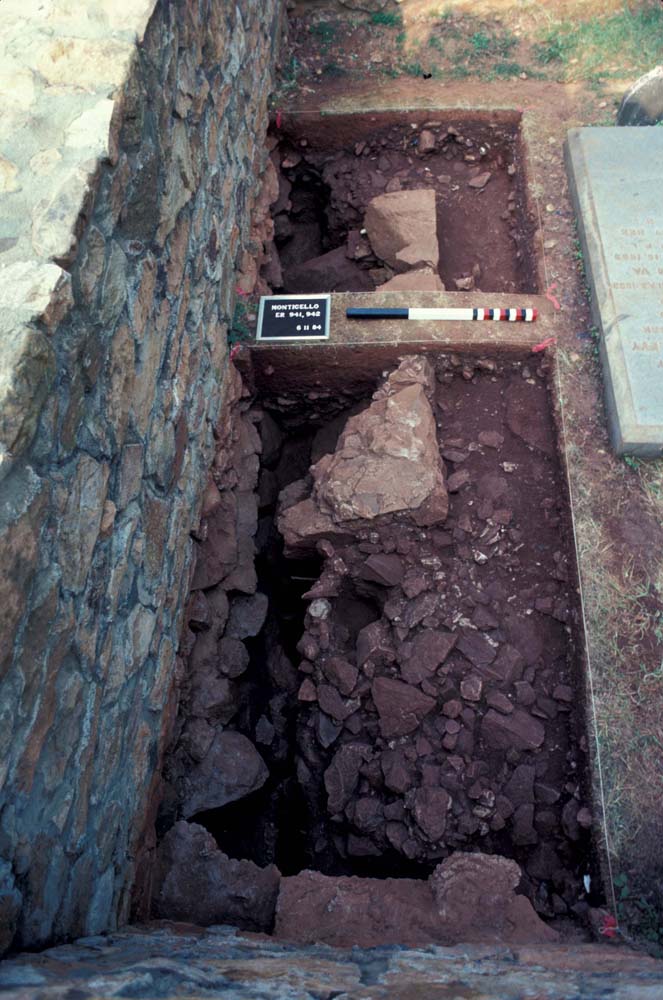 In 1994, Susan Kern led excavations searching for the planting holes for the original mulberry trees that lined Mulberry Row. She placed one unit to the northeast of the Stone House, directly north of the original Pi-Sunyer trench.