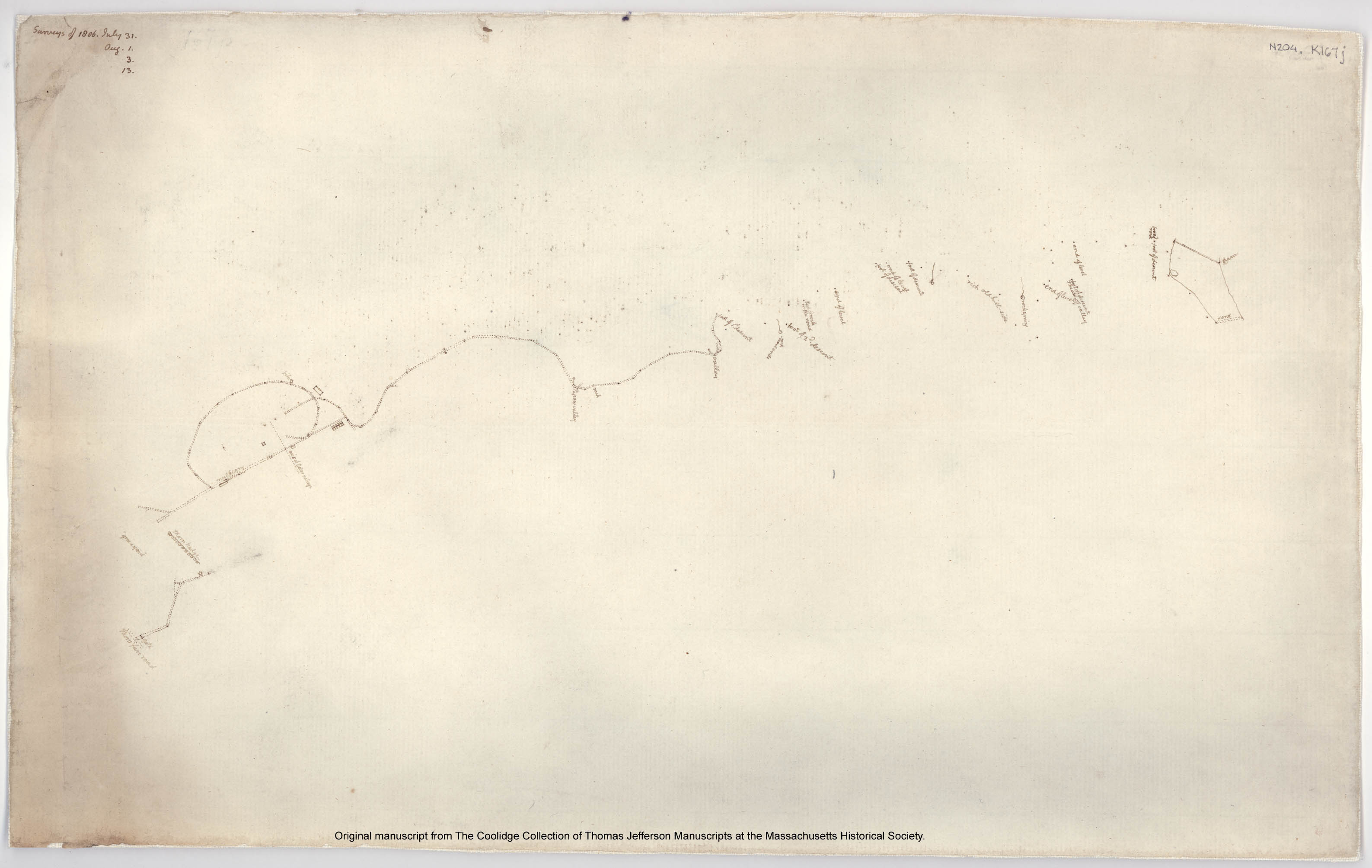 1806c Monticello: surveyed land (plat). N204; K167j. Thomas Jefferson Papers: An Electronic Archive. Massachusetts Historical Society, Boston, MA. http://www.thomasjeffersonpapers.org