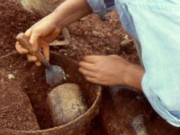 In 1984, excavation proceeded within a 10′ X 10′ grid oriented on axis with the Monticello mansion. Quadrats of 8′ X 8′ were opened initially, leaving 2′ balks on two sides. Subsequent removal of the balks resulted in the excavation of units of varying sizes, from 2’ X 2’ to 2’ X 10’. Within units, excavation proceeded in natural levels. Opening and closing elevations were recorded, but measurements were not related to a fixed datum point. Excavators used a method of careful troweling to recover artifacts, but they did not use screens.