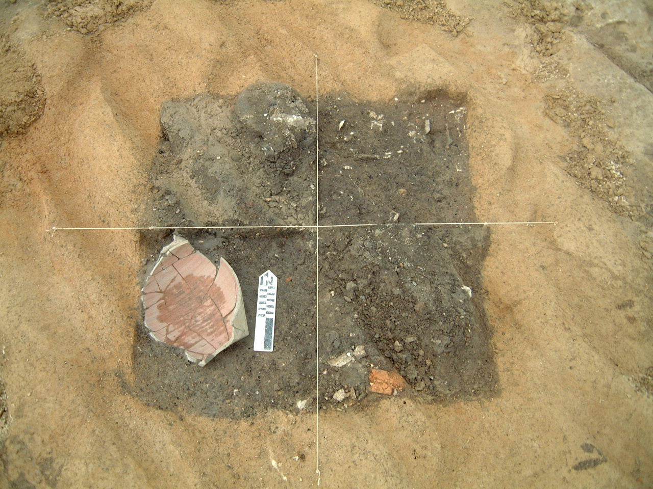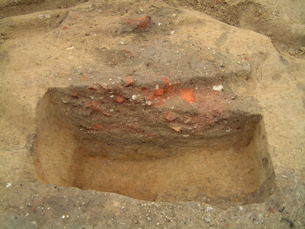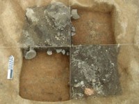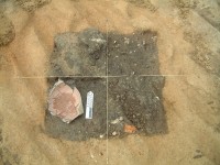During the summers of 2004 and 2005, Brown and Harpole expanded the excavation area to the south and east after a large, burnt area was identified prior to the installation of the quarter’s interpretive sign. The excavations revealed a possible cellared addition to the structure above Feature 8 as well as a third subfloor pit that may have been associated with a second, later quarter. The large burnt area appears to predate the quarters and may be related to a surface kiln or brick clamp associated with the manor house construction in the 1690s. Additional postholes, related to the quarters and perhaps fencelines and other landscape features, were found throughout the area. Two substantially larger postholes were found in the southwest corner of the excavation area and are most likely related to a post-in-ground structure south of the quarters.