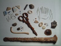 Excavation of the Fairfield Quarter has revealed a complex series of buildings and activities highlighting the frequent changes taking place within the core of the plantation during the eighteenth century. The artifacts recovered from the two subfloor pits and the large cellar is likely a combination of materials from the quarters, both architectural and domestic, as well as materials from other nearby structures and activities. Included within Feature 87 were items related to gardening, including a pitchfork and part of a watering can. It can be assumed that slaves completed the majority of gardening tasks on the plantations, but it is unclear whether these tools were used primarily for tending the Burwell garden and various crops or if slaves used these in personal gardens located adjacent to the quarters. Throughout the plowzone were found various lead forms, including discs of various sizes, sprue, and folded spoons, suggesting the possible recycling and manufacture of lead items by the quarter’s occupants.