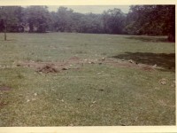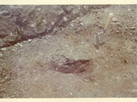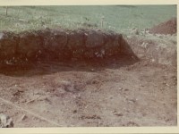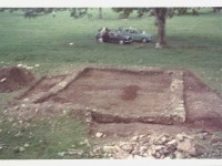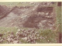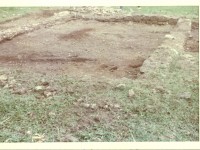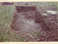 House 26 was the first domestic site excavated at New Montpelier. The site was chosen because it presented a rectangular shape that was easily identified in the grassy surface, with some elements of the stone foundation protruding, and because it was near to the centre of the known village area and immediately beside what appeared to be a shallow sunken pathway leading upslope through the village. Extensive excavation in 1973 and 1975 exposed a complete stone foundation with evidence of occupation during the final decades of slavery and beyond abolition down to about 1860.