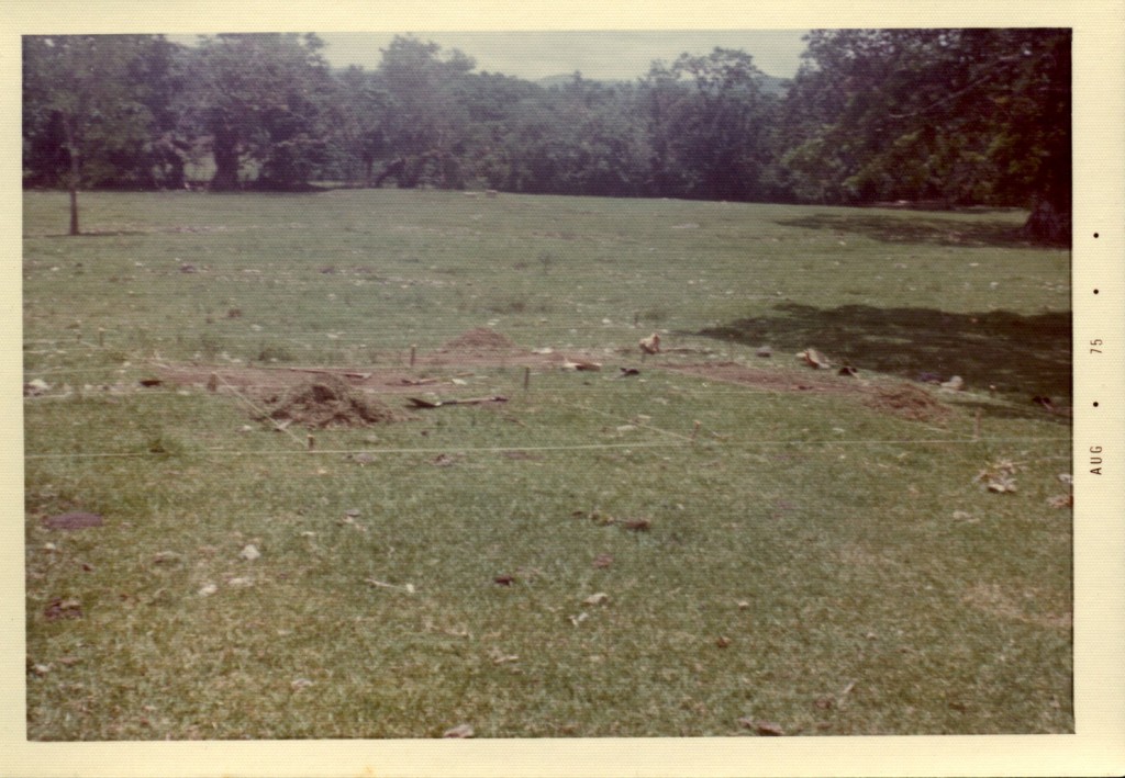 Only houses with stone foundations were visible by surface survey and only these stone foundations were excavated. Within the village a total of 42 complete stone foundations were identified and traces found of at least another ten. House 26 is one of the former, with a complete foundation. Probably it is also one of the houses described in 1825. The precise boundaries of the village are known from a plan of the plantation surveyed in 1821. By 1973 the stone wall that enclosed two sides of the village in 1821 had been levelled to allow free grazing of livestock but the aqueduct that marked the other two sides remained and was supplemented by a barbed wire fence.