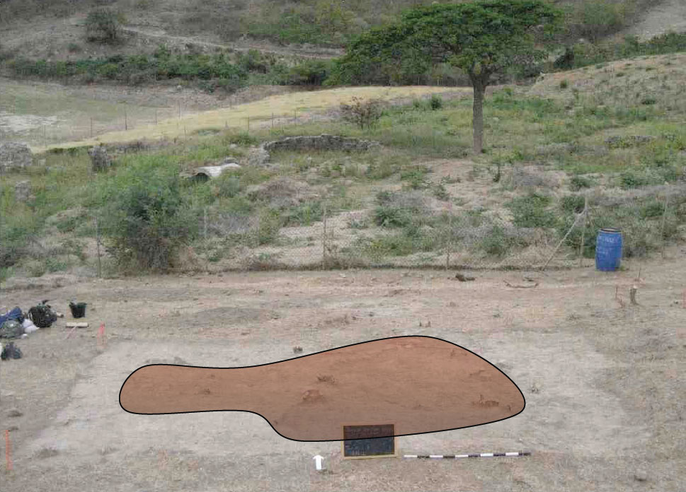 Area 1 in the Workers’ Village, with approximate house location indicated in shading. Arrow points north.