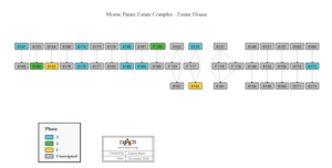 PDF of Morne Patate Estate House and Dependencies site plan with excavated units labeled, compiled by DAACS using maps provided by Mark Hauser, Principal Investigator.
