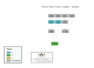 The varied deposits excavated as part of the Estate complex, including two house areas (Blocks E and “Stable”), the estate house, and estate kitchen, made the assignment of intrasite stratigraphic groups problematic. For this reason, we present separate Harris Matrices for each excavation block.