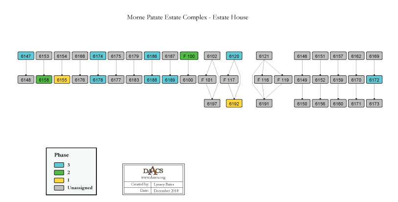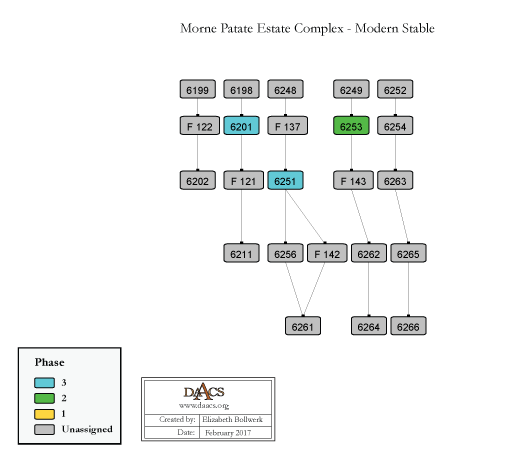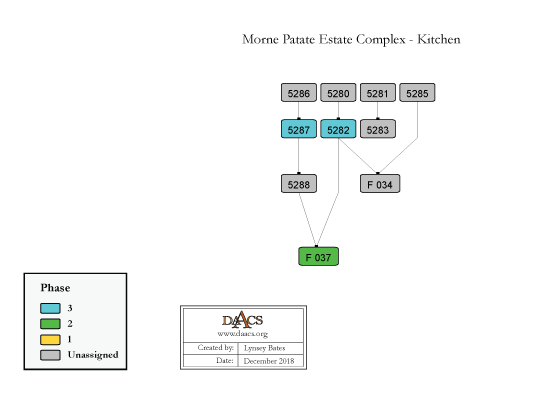 These Harris Matrices are based on data on stratigraphic relationships recorded among contexts in the DAACS database. It was drawn with the ArchEd application. See http://www.ads.tuwien.ac.at/arched/index.html.