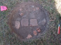 Work began in 2008 by establishing a UTM grid across the entire area of the village. During the 2008 season 398 STPs were excavated in transects running north/south and east/west through the center of the village area, as identified by historic plats and Dr. Karl Watson’s 1988 excavations. This cross-shaped test area was created to help us begin to establish boundaries of the village. During this season, Dr. Ramersad oversaw the excavation of Unit 1, a single 1-x-1 meter unit southwest of the aqueduct’s cistern. A cobble paving (Feature 1, originally interpreted as a cobble floor to a domestic structure) was discovered at a little over a meter deep. We interpret this feature as a cobble paving constructed around the cistern to control erosion and muddy conditions around the outlet for the cistern. This explains the mix of early- and late-19th century artifacts found together at this level. The feature consists of a hard-packed surface without stone in the southwest area of the unit and a stone-packed surface that appears to overlie it in the east and northwest corner. The feature was not excavated, as it was felt that the entire feature should be exposed before removing the cobbles.
