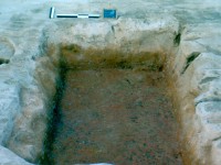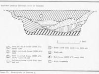 Some sixty feet to the southeast of F007 was one of two post-in-ground dwellings, Structure 2 on the site map. The structure was composed of a cellar (F001) and its associated postholes. The building measured 16 x 12 feet with a 5-foot porch or shed on the south side. The structure was torn down as opposed to being burnt down and the cellar remained open for some time after the destruction of the house (Reinhart 1987:31,38).