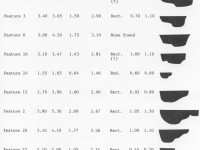 Excavated contexts that belong to the same depositional basin (e.g. a posthole and postmold or the layers in a single pit) were given a single feature number (i.e. F022 contains the following feature contexts: F22/S/1 and F22/S/2). In addition, single contexts were given feature numbers when the original field records indicate that the excavators recognized a context’s spatial distinctiveness from surrounding contexts.
