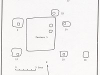 - Some postholes on the site map are represented schematically. The excavators’ site map shows the location of these postholes but not their shape. The postholes’ context records record their dimensions but DAACS has not been able to locate plan drawings of the postholes. As a result, DAACS has chosen to represent these postholes as boxes with the appropriate dimensions and locations.