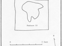 Two pits to the east of F053 were probably associated with exterior activity areas. Feature 19 (6.5 x 3.5 feet) and Feature 21 (6.75 x 3.5 feet) were both a foot or less deep (Reinhart 1987:52,55).