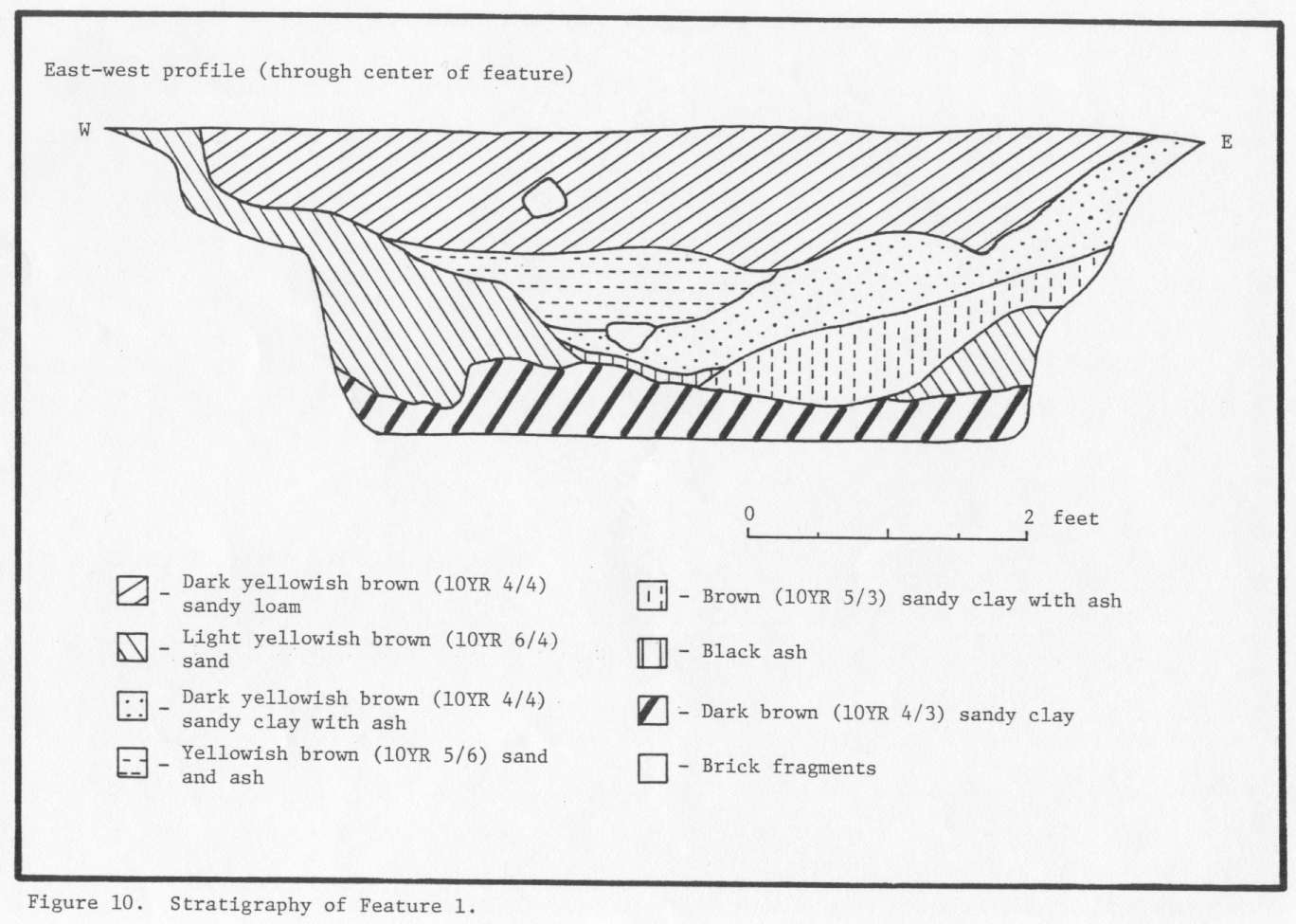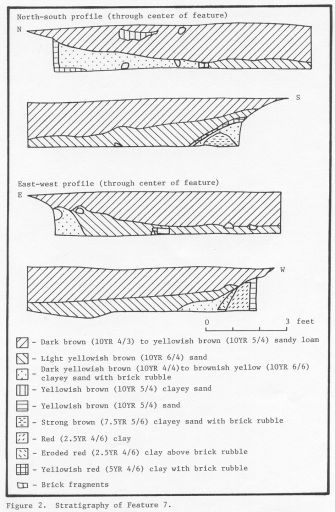 Except for Feature 7, all the features at the Pope site were screened through ¼-inch hardware cloth. The decision not to screen Feature 7 was based on the high-frequency, low-analytical value of brick fragments, the large size of the feature, and the low density of other types of artifacts (Reinhart 1987:15-16,18).