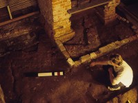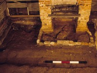 This short-term project, excavated by Christy Leeson and Thane Harpole under the direction of Esther White, took placed in February and March 1998. Test units, including test unit 2 containing the pit, were laid out by triangulating from the interior corners of the Servants Hall foundation.
