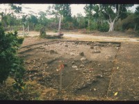 House 16 was one of a series of houses lining the west side of a path leading up the hill from the planter’s residence, with industrial works and cane fields cane fields, and industrial works based on the observation of House area (see illustration in Scupin and DeCorse 2002:35 based on drawing by Armstrong). When excavation of the site was initiated in 1988, this was the first house studied. The foundation stones were followed to a point where it made an abrupt turn allowing us to define the corner of the building. It included a well defined two room house with a doorway and small porch on the east side, which may have been the formal entry side.