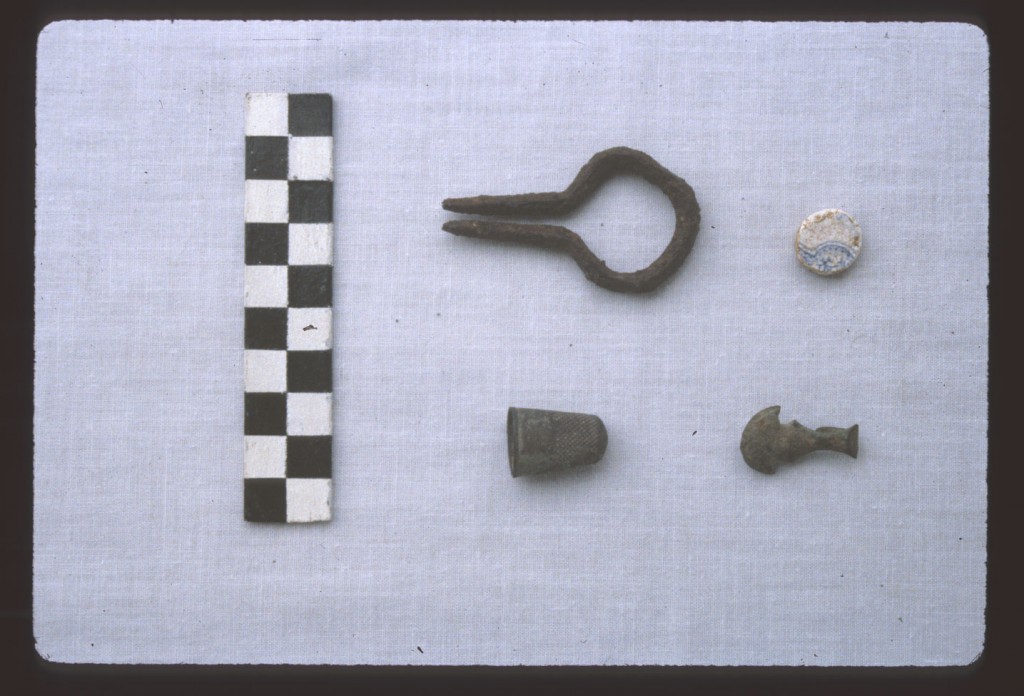 The yard-area itself was apparently swept clean of artifacts on a regular basis, with artifacts found most frequently near the foundation and at the outside edges of the yard. In fact, this pattern of cleared space bordered by artifact accumulation was used to define boundaries between house sites.