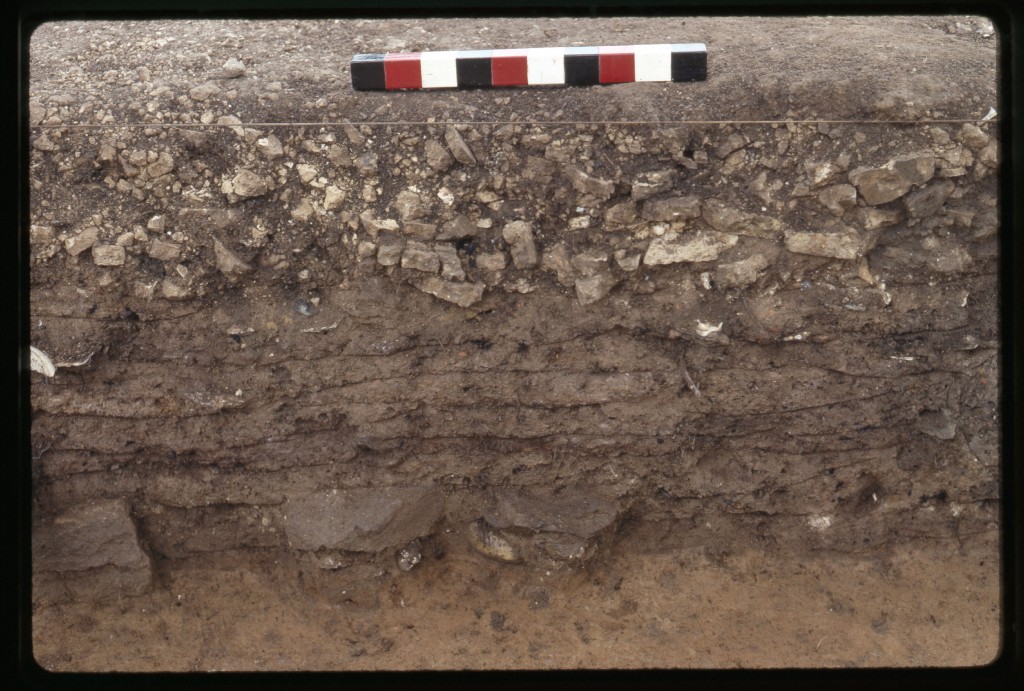 Phase 6 represents evidence of historic topsoil or ground surface pre-dating the midden’s layers.