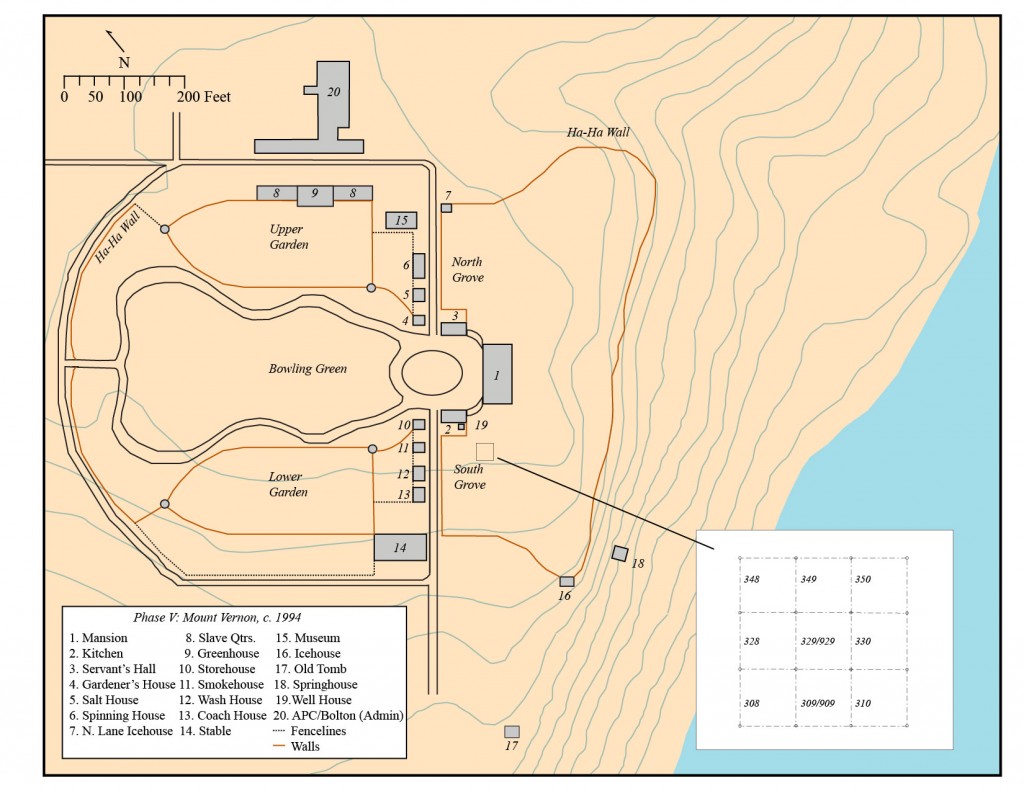 | Phase 5: Modern intrusions and layers | Mount Vernon Ladies’ Association period | None | 308A, 308B, 308C, 308D, 308E, 308F, 308G, 308H, 308J, 308K, 308L, 308M, 309A, 309B, 309C, 309D, 309E, 309F, 309G, 309H, 309J, 309K, 309L, 310A, 310B, 310C, 310D, 310E, 310F, 310G, 310H, 328A, 328B, 328C, 328D, 328E, 328F, 328S, 328W, 329A, 329B, 329C, 329D, 329E, 329F, 329G, 329H, 329J, 329K, 330A, 330B, 330C, 330D, 330E, 330F, 330G, 330H, 330J, 330K, 348A, 348B, 348C, 348D, 348E, 348F, 348G, 348H, 348J, 348K, 348L, 348M, 348N, 348P, 348R, 348S, 348T, 349A, 349B, 349C, 349D, 349E, 349F, 349G, 349H, 349J, 349K, 349L, 349M, 349N, 349P, 349R, 349S, 350A, 350B, 350C, 350D, 350E, 350F, 350G, 350H, 350J, 350K, 350L, 350M, 350N |
