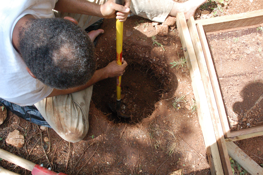 Prior to 2007, no archaeological work had been conducted that related to the historic period occupations at Stewart Castle. The goal of the 2007 DAACS excavation was to assess the temporal components at the main house, and to understand both the temporal and spatial occupations at the slave village. With the help of students from the University of the West Indies and the University of Virginia, thirty-six shovel-test-pits (STPs) were excavated inside the fortified courtyard at the Main House. Architectural and landscape features were also mapped at the main house. No 1-x-1 meter units were excavated, although plans for future field seasons include larger units and expanded STP coverage outside of the courtyard.